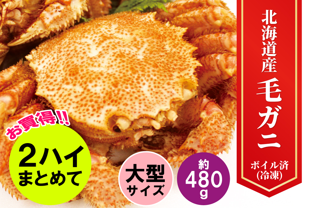 かに 【2ハイまとめて】大型毛ガニ★★ [冷凍] 販売価格 15,000円(税込み) 会員価格 (税込み) 通常価格 (税込み) 在庫 商品コード 5449 JANコード 数量 - + カートに入れる お気に入りリストへ追加する カテゴリー かに 送料は別途かかります。冷凍便 北海道産の身入りが良い時期の毛ガニを、美味しさそのまま冷凍しています。食べごたえありの大型毛ガニ(約480g)を<2ハイまとめて>、お買い得価格でのご提供です。 RECOMMENDEDおすすめ商品 ボイルずわいがに足 2.2キロ箱 [冷凍] 11,800円(税込み) <特大>ボイルたらばがに足 [冷凍] 13,500円(税込み) ボイルたらばがに足 約800g [冷凍] 7,950円(税込み) 北海道産大型毛ガニ [冷凍] 7,800円(税込み) ずわいがに贅沢盛 [冷凍] 2,150円(税込み) ボイルずわいがに足 1kg [冷凍] 5,950円(税込み) ずわいがに棒肉 400g [冷凍] 4,500円(税込み) ボイルずわいがに爪 1kg入 [冷凍] 6,250円(税込み) 津軽弘前市場 ハマダ海産 会社概要 実店舗紹介 ▼Facebook 津軽弘前市場 ハマダ海産 2025年12月 日 月 火 水 木 金 土 1 2 3 4 5 6 7 8 9 10 11 12 13 14 15 16 17 18 19 20 21 22 23 24 25 26 27 28 29 30 31 2026年01月 日 月 火 水 木 金 土 1 2 3 4 5 6 7 8 9 10 11 12 13 14 15 16 17 18 19 20 21 22 23 24 25 26 27 28 29 30 31 発送休業日(通販部は営業:10-17時) 営業(実店舗8-18時/通販部10-17時) 虹のマートシール5倍デー ショッピングガイド 特定商取引法に基づく表記 個人情報保護方針 送料について 会員規約 お問合せ