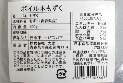 海のもの 青森県産・ボイル木もずく 500g [冷凍] 販売価格 1,950円(税込み) 会員価格 (税込み) 通常価格 (税込み) 在庫 商品コード 5661 JANコード 数量 - + カートに入れる お気に入りリストへ追加する カテゴリー 海のもの 冷凍便 とっても貴重な青森県産の天然もずく!ちょっと珍しい名前の「木もずく」海の中で、木のように生えていることが名前の由来のようです。沖縄の養殖モズクとは異なり、天然物で粘りが強く、独特の歯ごたえが特徴です。茎が細くてシャキシャキ食感!生姜醤油やポン酢でさっぱり頂くのがオススメです。 ボイル済のため、水洗い後すぐにお使いいただけます。お好みに味付けして、シャキシャキ・つるつる、のど越しさわやかにお召し上がりください。 津軽弘前市場 ハマダ海産 会社概要 実店舗紹介 ▼Facebook 津軽弘前市場 ハマダ海産 2025年10月 日 月 火 水 木 金 土 1 2 3 4 5 6 7 8 9 10 11 12 13 14 15 16 17 18 19 20 21 22 23 24 25 26 27 28 29 30 31 2025年11月 日 月 火 水 木 金 土 1 2 3 4 5 6 7 8 9 10 11 12 13 14 15 16 17 18 19 20 21 22 23 24 25 26 27 28 29 30 発送休業日(通販部は営業:10-17時) 営業(実店舗8-18時/通販部10-17時) ショッピングガイド 特定商取引法に基づく表記 個人情報保護方針 送料について 会員規約 お問合せ