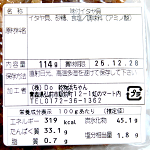 乾物浜ちゃん 乾物・味付イタヤ貝[常温・冷蔵・冷凍] 販売価格 1,100円(税込み) 会員価格 (税込み) 通常価格 (税込み) 在庫 商品コード 8051 JANコード 数量 - + カートに入れる お気に入りリストへ追加する カテゴリー 乾物浜ちゃん 季節のイチオシ 店長のおすすめ 常温便冷蔵便冷凍便 ほたての親戚?!旨味凝縮の味付イタヤ貝! 「イタヤ貝って何?」という声が聞こえてきそうですが、実はホタテの仲間なんです。 今回ご紹介するイタヤ貝は、1粒が親指の爪ほどのコロッとしたサイズ。口に入れた瞬間はやや歯ごたえがありますが、噛むほどにやわらかくなり、ホタテにも負けない凝縮された旨味がじゅわっと広がります。 一口サイズなので、そのままおつまみとしても絶品。炊き込みご飯や茶碗蒸しなどに加えれば、料理の味がワンランクアップします。この冬、青森ではホタテの価格が高騰中。そんな今だからこそ、ホタテの代わりにお得でおいしい「イタヤ貝」をぜひ一度お試しください! 津軽弘前市場 ハマダ海産 会社概要 実店舗紹介 ▼Facebook 津軽弘前市場 ハマダ海産 2025年11月 日 月 火 水 木 金 土 1 2 3 4 5 6 7 8 9 10 11 12 13 14 15 16 17 18 19 20 21 22 23 24 25 26 27 28 29 30 2025年12月 日 月 火 水 木 金 土 1 2 3 4 5 6 7 8 9 10 11 12 13 14 15 16 17 18 19 20 21 22 23 24 25 26 27 28 29 30 31 発送休業日(通販部は営業:10-17時) 営業(実店舗8-18時/通販部10-17時) 虹のマートシール5倍デー ショッピングガイド 特定商取引法に基づく表記 個人情報保護方針 送料について 会員規約 お問合せ