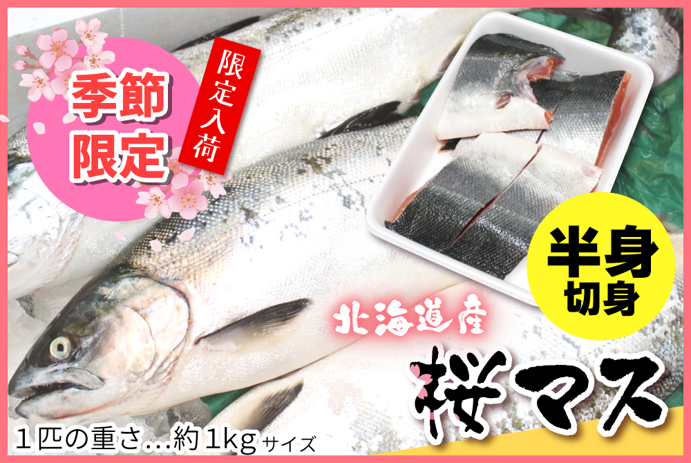 鮭 北海道産・生桜マス◆半身切身 [冷蔵・冷凍] 販売価格 1,300円(税込み) 会員価格 (税込み) 通常価格 (税込み) 在庫 6 商品コード 00308 JANコード 数量 - + カートに入れる お気に入りリストへ追加する カテゴリー 鮭 季節のイチオシ 店長のおすすめ 販売期間 ~2026/03/14 17:00 3月14日に出荷します! ※受取り日時は「指定なし」でご注文下さい。 冷蔵便冷凍便 ◆こちらは半身切身パックでお届けします。北海道産のサクラマス(本ます)が入荷しました! 頭・内臓を処理して切身だけをお届けします。届いたらすぐ使えます♪ ※「ご自分で切りたい!」というお客様、切らずにお届けもできますので ご希望の際はコメント欄にてお申し付けください。 ※一緒に他の商品もご注文いただけますが、その商品によっては、本日ご用意できないものもございます。 その場合は、揃えられる商品のみのお届けとなります事ご了承ください。 ご注文内容を変更してご連絡いたします。 津軽弘前市場 ハマダ海産 会社概要 実店舗紹介 ▼Facebook 津軽弘前市場 ハマダ海産 2026年03月 日 月 火 水 木 金 土 1 2 3 4 5 6 7 8 9 10 11 12 13 14 15 16 17 18 19 20 21 22 23 24 25 26 27 28 29 30 31 2026年04月 日 月 火 水 木 金 土 1 2 3 4 5 6 7 8 9 10 11 12 13 14 15 16 17 18 19 20 21 22 23 24 25 26 27 28 29 30 虹のマート休業日 虹のマート臨時休業 虹のマート営業:8-18時(通販部:10-17時) ショッピングガイド 特定商取引法に基づく表記 個人情報保護方針 送料について 会員規約 お問合せ