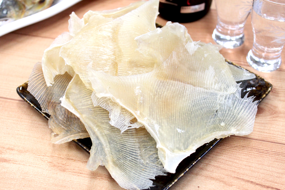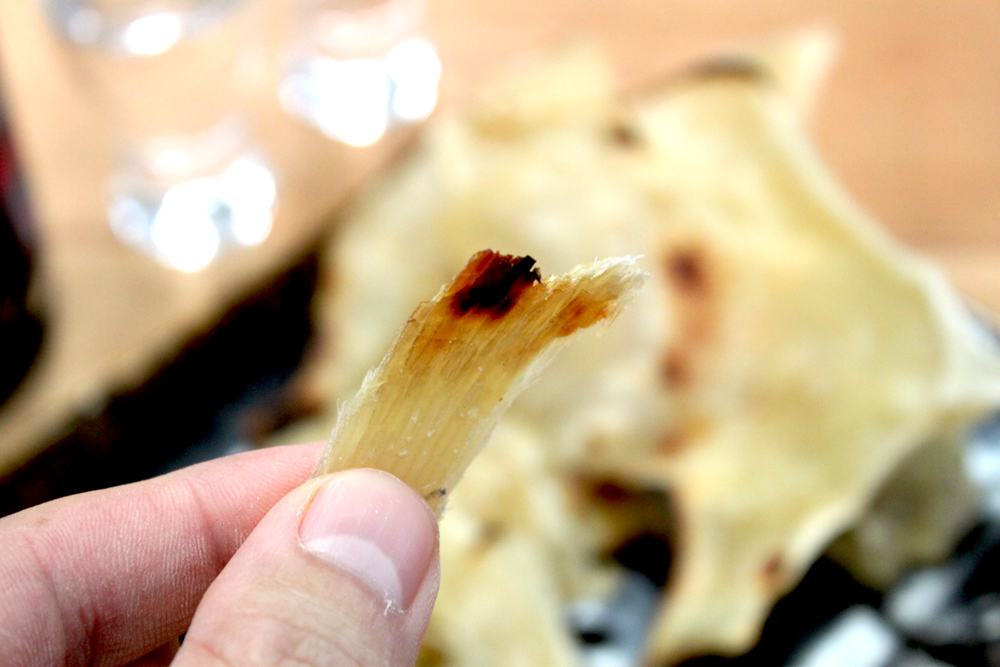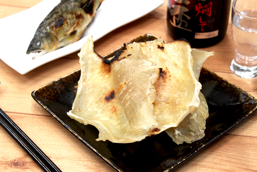 炙ったえいひれは、表面はパリッと・中はしっとり。さらにコリコリッとした軟骨が合わさり、えいひれ特有のクセになる食感が生まれます!