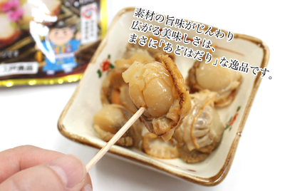 乾物浜ちゃん 【レトルト】ほたて塩焼 [常温・冷蔵・冷凍] 販売価格 800円(税込み) 会員価格 (税込み) 通常価格 (税込み) 在庫 商品コード 8052 JANコード 数量 - + カートに入れる お気に入りリストへ追加する カテゴリー 乾物浜ちゃん 季節のイチオシ 店長のおすすめ 常温便冷蔵便冷凍便 青森の海の恵みをそのまま味わえる木戸食品の「ほたて塩焼」です!! 陸奥湾で育ったほたては、甘みが強く、旨みが濃いのが特徴です。素材を活かし、りんご醤油と伯方の塩でシンプルに焼き上げました。 袋を開けた瞬間、ふわっと広がる香ばしい香り。ひとくち食べると、やわらかく、噛むほどに広がる旨み。ついもう一粒…と手が止まらなくなります。 さらに、保存料不使用の上、常温で長期保存が可能!そのまま食べられる手軽さも嬉しいポイントです。木戸食品さんいわく、この「ほたて塩焼」は発売当初から累計200万袋以上売れている超ロングセラー商品とのこと!今日はちょっといいおつまみで一杯…そんな日に、ぜひどうぞ。 津軽弘前市場 ハマダ海産 会社概要 実店舗紹介 ▼Facebook 津軽弘前市場 ハマダ海産 2026年04月 日 月 火 水 木 金 土 1 2 3 4 5 6 7 8 9 10 11 12 13 14 15 16 17 18 19 20 21 22 23 24 25 26 27 28 29 30 2026年05月 日 月 火 水 木 金 土 1 2 3 4 5 6 7 8 9 10 11 12 13 14 15 16 17 18 19 20 21 22 23 24 25 26 27 28 29 30 31 虹のマート休業日 虹のマート営業:8-18時(通販部:10-17時) ショッピングガイド 特定商取引法に基づく表記 個人情報保護方針 送料について 会員規約 お問合せ